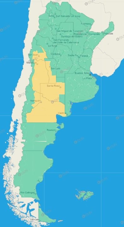 La Pampa: Curacó – Lihuel Calel – Chical Co – Puelén – Chalileo – Limay Mahuida – Loventué – Atreucó – Capital – Catriló – Conhelo – Guatraché – Quemú Quemú – Toay – Utracán