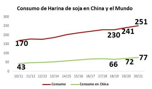 - ¿Dónde se consume más del 30% de soja y harina de soja del mundo? En China.