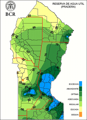 Después de las fuertes lluvias acaecidas en el centro-sur de Santa Fe y sudeste de Córdoba, el mapa de reservas hídricas del suelo cambió de un estado de reservas escasas a excesos en gran parte de la región núcleo. En una ventana de tiempo de una semana, la región citada recibió precipitaciones de más de 200 mm cargando los perfiles edáficos de los lotes de trigo que transitan la etapa de llenado de granos y madurez.