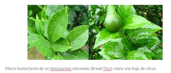 La función de los tensioactivos es disminuir la tensión superficial del agua que actúa como diluyente del fitosanitario. Una gota de agua tiene una tensión superficial de 73-74 dinas/cm2, mientras que cuando agregamos un tensioactivo ya sea un alcohol grasos o Nonil fenol etoxialdo (NFE) la tensión superficial baja a 33-34 dinas/cm. Cuando usamos una organosilicona (Trisiloxano) que son los tensioactivos por excelencia la tensión superficial disminuye llegando a las 21 dinas/cm2 generando en efecto de súper humectación mayor a cualquier tensioactivo convencional.