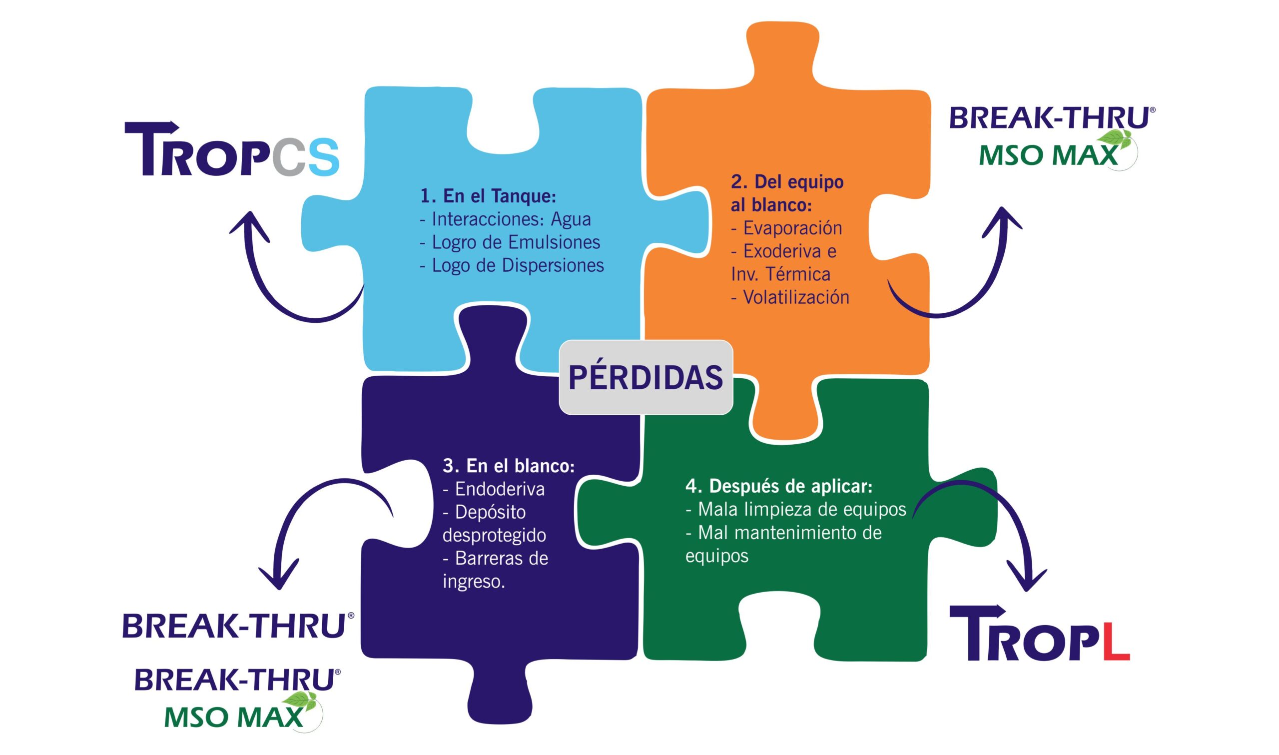 Mediante el incremento del área de humectación y de la penetración, nos aseguramos más puntos de contacto y mayor ingreso del activo al blanco objetivo.