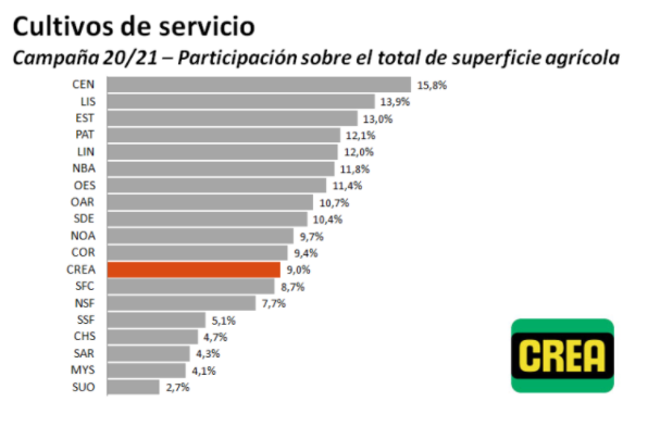 Una de esas alternativas es el empleo creciente de cultivos de cobertura o de servicio, los cuales en la campaña 2020/21 representan ya un 9% del área agrícola total programada a nivel nacional y más de un 15% en la región CREA Centro (comprendida por San Luis y centro-sur de la provincia de Córdoba).