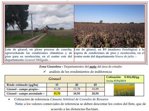 Ante los dos frentes de tormentas que se concretaron en la semana, se registraron días soleados, con buenas condiciones climáticas, se avanzó en el proceso de cosecha en los departamentos del centro norte, condicionado por los pisos de los lotes y estado fenológico de los cultivares. Con variados porcentajes de humedad de grano, pero en general, dentro de lo aceptado a nivel comercial. Se mantuvo lo reflejado en el informe de la semana anterior, en las áreas impactadas en distintos grados por los eventos climáticos, los rendimientos promedios obtenidos fluctuaron entre 9 – 11 – 13 qq/ha. En cuanto al resto del área con mínimo a nulos impactos, los rendimientos promedios fueron entre 20 – 24 – 25 qq/ha, con lotes puntuales de 28 qq/ha. El aspecto sanitario del cultivo, en general, se presentó muy bien, sin ataques de plagas, ni enfermedades hasta el momento. Esta situación en el área girasolera de la provincia seguramente cambiaría ante los excesos hídricos, anegamiento parcial o total de lotes, según zona (departamento Nueve de Julio, con mayor impacto), vuelco, caída de plantas, ataques de cotorras y palomas, incidirían directamente en los resultados y las perspectivas de buenos rindes irían disminuyendo. Se observaron los siguientes estados fenológicos: R “estados reproductivos” en un bajo porcentaje en R6 (fin de floración, caída de flores liguladas) y el resto en R7 (la parte de atrás del capítulo comienza a ponerse amarillento) y lotes más avanzados en R9 “madurez fisiológica” (parte de atrás del capítulo y las brácteas de color amarillento a marrón oscuro)