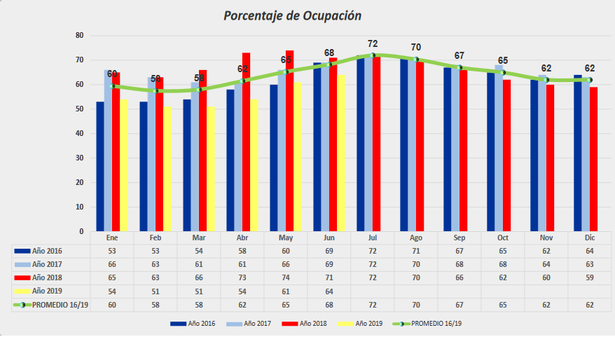 La encuesta realizada por la Cámara Argentina de Feedlot entre sus empresas socias muestra que en el presente mes de junio el porcentaje de ocupación de corrales fue de apenas 64% versus 69% en el mismo mes de 2017 y 2016 (junio de 2018 no es comparable porque una sequía histórica obligó a encerrar un gran número de vacunos).