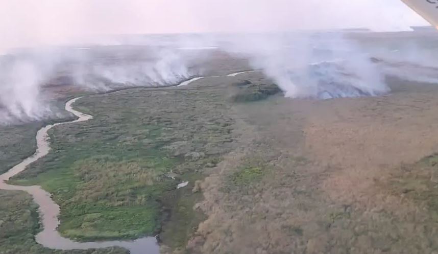 La imagen aérea de los incendios en zonas del Portal Carambola, uno de los 10 que hay para ingresar al Parque Nacional Iberá, fue compartida por el ambientalista Luis Martinez, a través de sus redes sociales. “Desde principio, y hasta fines de enero, en la provincia de Corrientes combatió más de 580 foco igneo. Gran parte de los incendios se están registrando en bañados y esteros, en zonas de difícil acceso para el combate por tierra, sólo con medios aéreos”, explicó.