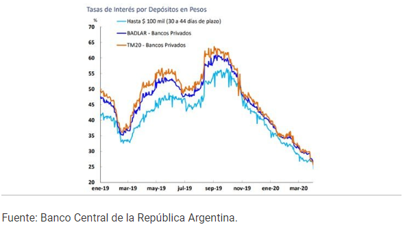 Aquí abajo podemos ver la evolución de las tasas para depósitos en pesos: