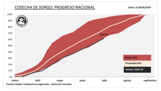 En el sur del área agrícola nacional, la culminación de la recolección de soja permitió que los productores se concentren en la cosecha de cereales de verano. Sobre la región del Centro-Norte de Santa Fe, donde se concentra el 18 % de los lotes de sorgo, el avance de cosecha ya se ubica en 82 %. En el Núcleo Norte, se encuentra el mayor rinde promedio de la actual campaña con 55 qq/Ha.