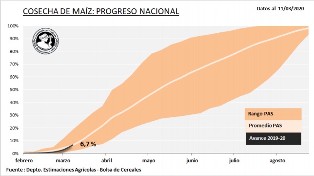 El avance de recolección nacional se ubica en el 6,7 % de las 6,3 MHa sembradas el presente ciclo. La producción estimada para la actual campaña es de 50 MTn, un 1,6 % menor que la campaña previa.