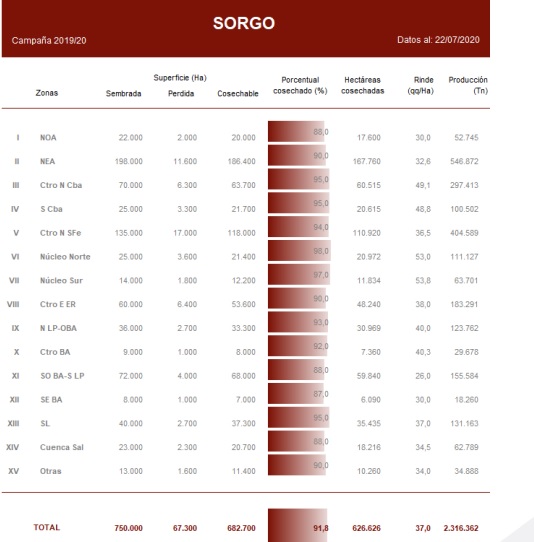 La cosecha de sorgo granífero entró en su tramo final en todo el país. Una acelerada baja en la humedad de los granos, promovió el ritmo en las labores de recolección en las zonas que más área del cereal concentran la actual campaña. Solo se continúan relevando demoras puntuales, en los departamentos del sur de las provincias de La Pampa y Buenos Aires.