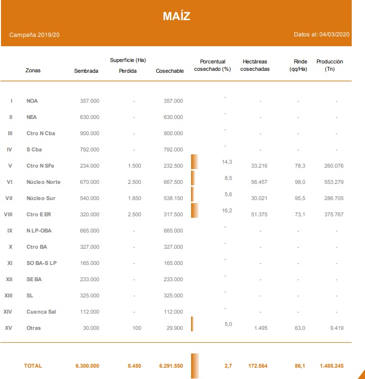 Luego de ser cosechado el 2,7% de las 6,3 millones de hectáreas estimadas para la campaña en curso, se mantiene la proyección de producción de 51 millones de toneladas