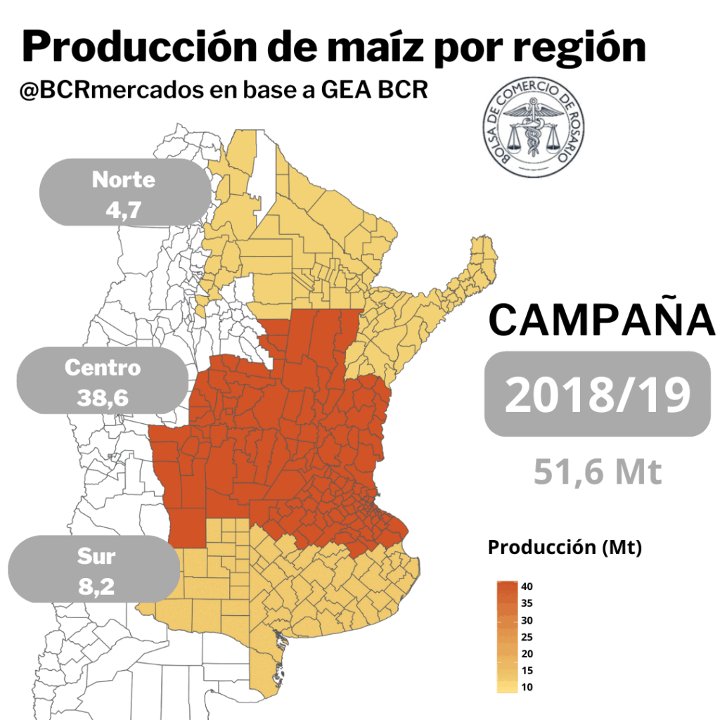 Desagregando el análisis por regiones, observamos que la Región Centro concentra la mayor oferta de maíz y los principales centros de demanda y, por lo tanto, es la que tiene mayor participación en la producción y consumo a nivel nacional.