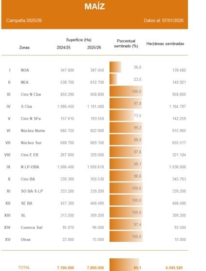 Con el calendario corriendo y una parte importante del área en pleno período crítico, la evolución del clima aparece como el factor que definirá si el maíz logra sostener su potencial o si la campaña deberá reacomodarse a un escenario de mayores restricciones hídricas.