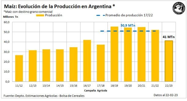 Los bajos rindes generan un ajuste en nuestra proyección de producción que ahora se ubica en 41 MTn para el ciclo 2022/23, que representa una disminución de volumen interanual de 21,2 %.