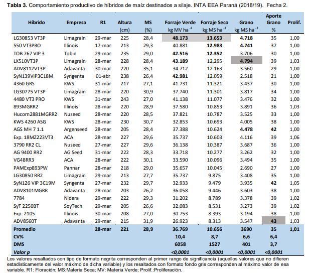 En la Estación Experimental Agropecuaria Paraná del INTA se evaluó en el ciclo agrícola 2018/19 el comportamiento productivo de cultivares de maíz con destino a silaje de planta entera en siembra temprana y tardía.
