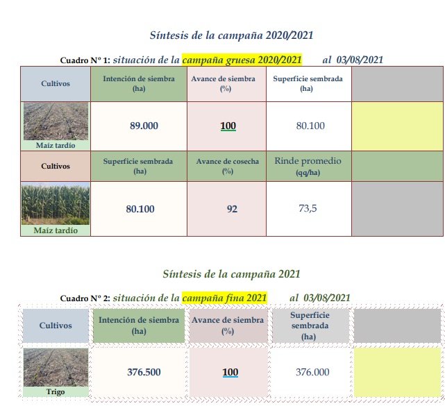 Se inició un nuevo ciclo de campaña 2021/2022 de cosecha gruesa, en especial del girasol, cuya siembra se concretó en los departamentos General Obligado, noroeste de San Javier y sureste de Vera. Particularmente, en los lotes bajo un manejo con barbecho largo o siembra directa y que disponían de humedad en la cama de siembra. En el resto de los predios, la implantación tuvo y tendría hasta la fecha una demora de 5 a 7 días, como consecuencia de que en los primeros 02 a 05 cm superficiales de la cama de siembra, había un escaso contenido de humedad y ante el riesgo de problemas en la germinación se optó por esperar. La intención de siembra, se estimó que sería similar o muy levemente superior a la del año pasado, que llegó a las 108.500 ha.