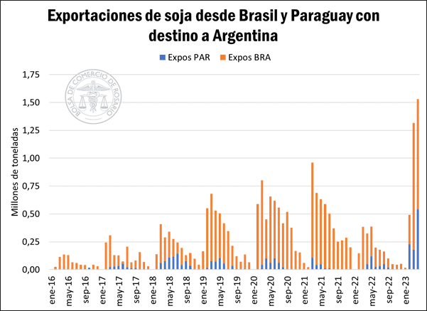 Sólo en el mes de abril, las exportaciones de soja desde Brasil con destino a Argentina superaron el medio millón de toneladas, en tanto que desde Paraguay se despacharon otro millón más. Independientemente que estas cifras puedan no coincidir con las importaciones argentinas el mismo mes calendario por una cuestión de temporalidad, da cuenta del impulso que muestra la actividad, que en términos acumulados registró el mayor movimiento internacional de granos para esta categoría en la historia.