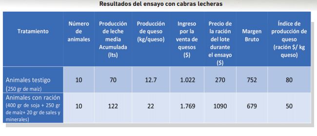 de 50 $/kg de queso versus 80 $/kg de la ración testigo.