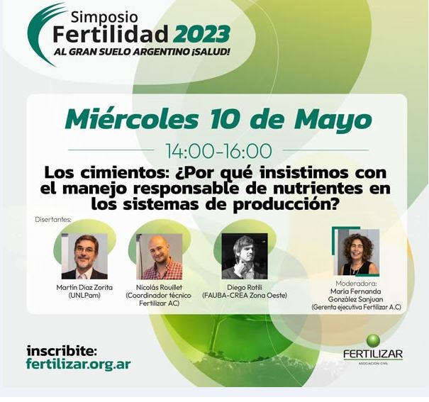 El Simposio FERTILIDAD 2023 atravesará temáticas de nutrición de cultivos y fertilidad de suelos focalizadas en la búsqueda de una mayor eficiencia y efectividad en el uso de recursos e insumos. En este sentido, contará con la participación de 6 oradores internacionales, Patricio Grassini y Laila Puntel, ambos de la de la Universidad de Nebraska, EE.UU.; Adrián Correndo de Kansas State, EEUU., Esteban Hoffman de UdelaR-Uruguay, Antonio Fancelli, consultor de Brasil y Elena Patrón de Uruguay y con exposiciones de más de 20 referentes de nuestro país, los más destacados en cada temática.