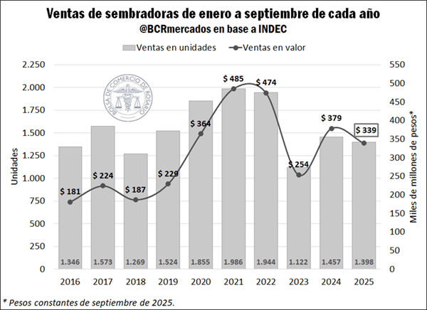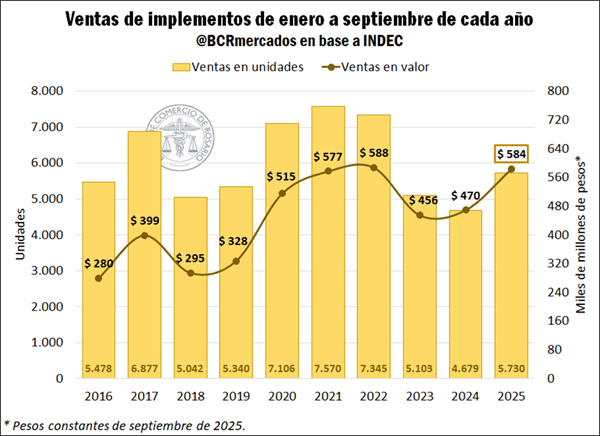 En términos de unidades, se comercializaron casi 13.000 máquinas, un incremento interanual del 11%, aunque comparado con el historial reciente el nivel sigue siendo bajo: se ubicó 9,5% por debajo del promedio del último quinquenio.