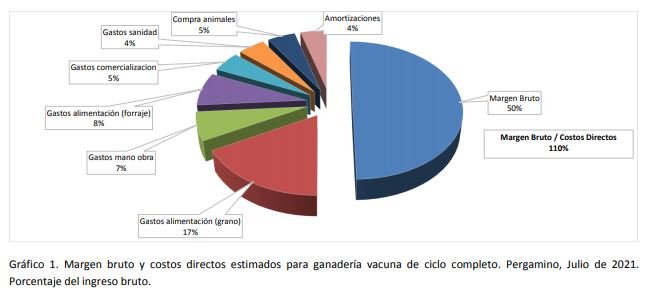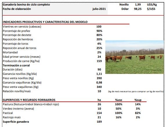 En este reporte se presenta el cálculo de costos, ingresos y resultados económicos para un sistema de producción bovina que incluye las actividades de cría y recría a campo y terminación en corral. El planteo definido corresponde a un nivel tecnológico medio, para el norte de la provincia de Buenos Aires.