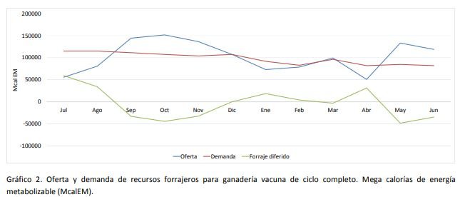 Se utiliza durante un periodo de entre 45 a 60 días. Se asume un aprovechamiento del animal del 50% del total de MS presente en el lote. El mismo se usa solo para las categorías menos demandantes (vacas de cría).