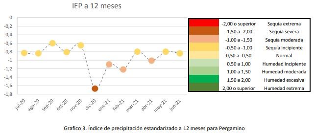El ciclo productivo 2020-2021, se caracterizó por estar atravesado por un fuerte déficit hídrico que, con mayor o menor efecto, estuvo presente durante todo el ciclo productivo comprendido entre julio de 2020 y junio 2021.