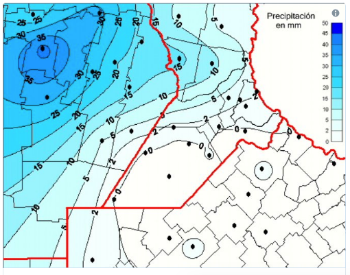 Según un relevamiento realizado entre las redes de estaciones meteorológicas de la Bolsa de Cereales de Córdoba y del Ministerio de Agricultura y Ganadería, este martes, hasta las 10 AM, las precipitaciones ya habían superado los 50 milímetros en algunas localidades como Villa María, Colonia Almada, Leones, Noetinger y Arroyo Cabral. Se suman a los sorpresivos milimetrajes registrados el lunes.