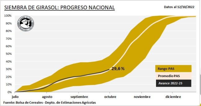 Ya promediando la ventana de siembra de girasol, las labores se concentran en el centro y sur del área agrícola nacional. La falta de lluvias no permite que la oferta hídrica superficial se recupere y de esta manera reducen la velocidad de los avances de siembra. Por otro lado, las heladas registradas en parte de los cuadros demoran el Ya promediando la ventana de siembra de girasol, las labores se concentran en el centro y sur del área agrícola nacional.