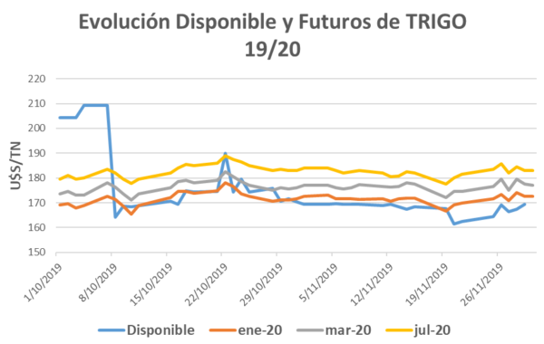 Desde las últimas semanas de noviembre, cuando comenzó a afianzarse la idea de recortes productivos, los precios en el disponible y los futuros, comenzaron a subir, apoyados por un contexto internacional al alza, por recortes productivos en Australia, quienes también están en cosecha en este momento, y por problemas climáticos en Estados Unidos, en plena implantación del trigo nuevo.