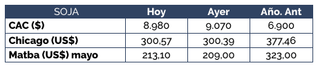 En la rueda de esta tarde, la oferta abierta por soja se ubicó en US$ 205/t para la descarga, 5 dólares más que en la sesión previa y sin descartar la posibilidad de mejoras. No se registraron propuestas de precio para las entregas diferidas.
