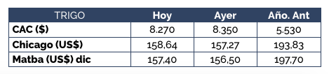 Durante la rueda de la jornada de hoy, las empresas exportadoras ofrecieron US$ 185/t por el trigo con descarga, 10 dólares más que en la rueda anterior. En el segmento forward, los valores propuestos para las entregas en junio y julio próximos se situaron en 175 y 170 dólares por tonelada, respectivamente, ambos mejorando en 5 dólares. Por la cosecha nueva, los ofrecimientos alcanzaron los US$ 155/t para la entrega en los meses de noviembre y diciembre próximos, y US$ 160/t para la entrega en enero de 2020.