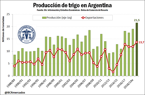 Las adecuadas reservas hídricas y el cuidadoso manejo de los productores permiten trabajar con rindes tendenciales en las proyecciones para la nueva campaña, dando soporte a la proyección de producción triguera en torno a los 21,5 millones de toneladas, un récord histórico para nuestro país.