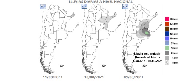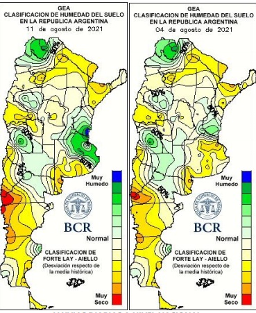 Sigue firme la intención de incrementar el área de maíz en más de un 10%. Se estima que se sembraran 1,7 M ha de maíz en la región, pero podrían ser aún más. Pero, de cara a la siembra, surgen los interrogantes por la falta de agua en el oeste de la región y las mayores probabilidades de tener una “Niña”. Las lluvias del domingo 7 de agosto, volvieron a impactar sobre el este de la región. El noreste bonaerense recibió los mayores milimetrajes: Lincoln registró 36,2 mm; Rojas, 32,2 mm. En el centro sur santafesino y el sudeste cordobés las lluvias estuvieron por debajo de los 10 mm. Las reservas de agua del suelo muestran un claro gradiente que desciende hacia el noroeste de la región y preocupa la falta de lluvias.