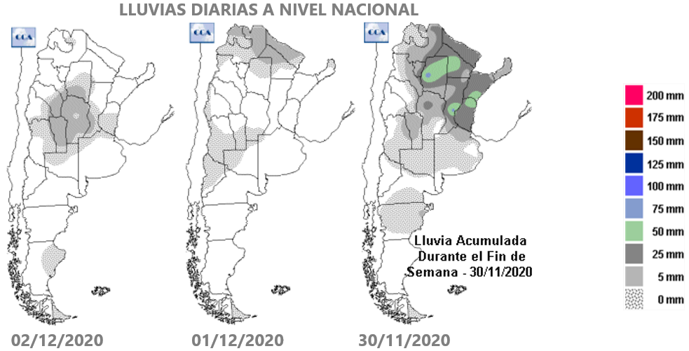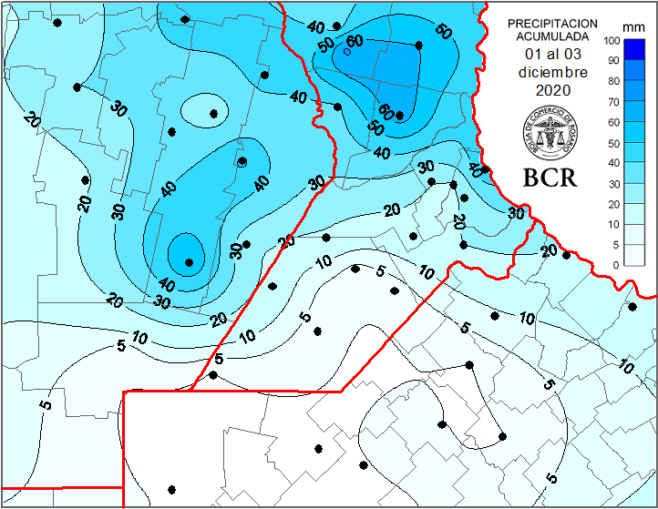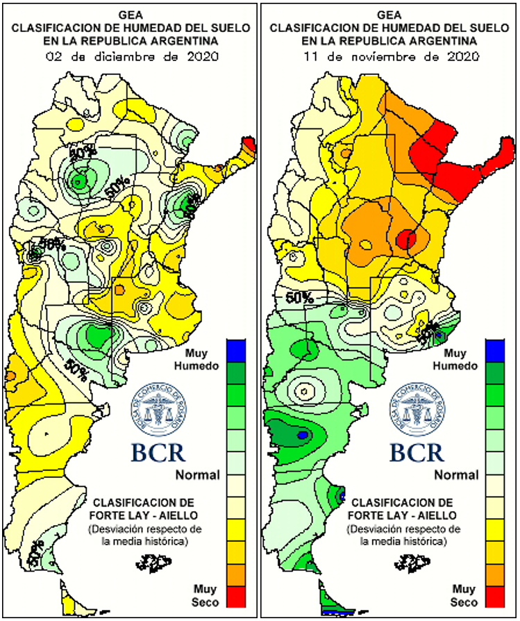 Sorprendieron las lluvias de los últimos días, y para bien. El oeste de Córdoba recibió mucho más: 20 a 40 mm con lluvias puntuales destacadas, como en Canals con 60 mm. También el centro sur de Santa Fe recibió un empujón de diciembre: las tormentas dejaron entre 20 a 60 mm. El sector de Irigoyen y Classon fue muy beneficiado. Se reactivaron las lluvias”, festejaban en Carlos Pellegrini por los 50 mm que recibieron entre el martes y el miércoles más los 60 mm del fin de semana pasado. “Con estas lluvias ahora hay muy buenas expectativas para la soja de segunda de segunda”, dicen, algo que parecía imposible 7 días atrás.