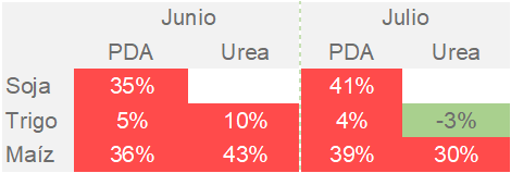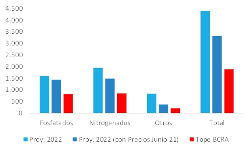 De hecho, para que las importaciones alcancen el límite habilitado por el BCRA sin compensar vía cantidades, los precios de los fertilizantes a importar deberían caer, en promedio, un 58% adicional con respecto a los precios observados en junio 2021.