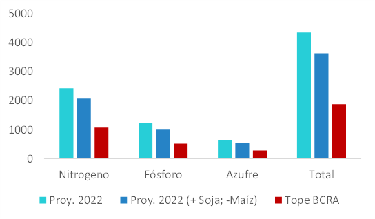 Un tercer escenario posible, aquí no analizado, implicaría un ajuste en las cantidades aplicadas de fertilizantes por hectárea, dadas la más desfavorable relación insumo-producto. En la práctica, se esperaría una combinación de estos efectos, con caída de precios y cantidades, que podrían llevar los requerimientos de importación a valores algo menores a los aquí presentados, aunque todavía bien por encima de los límites permitidos.