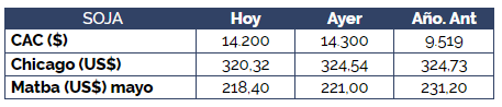 El único precio abierto de compra por soja fue para el segmento con descarga hasta el 15 de marzo, que se ubicó en los US$ 220/t, representando US$ 5/t menos que lo ofertado el día viernes.