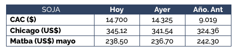 Con poca actividad en el mercado, la oferta de compra por soja contractual se dio sobre el cierre de la jornada y se ubicó en $ 14.920/t. No se dieron ofertas abiertas en el segmento diferido.