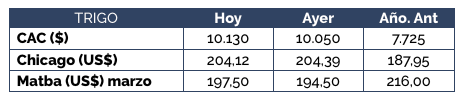 En la jornada de hoy, los compradores no efectuaron ofertas abiertas por el trigo en ninguno de los segmentos del mercado,