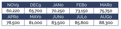 En relación al trigo con descarga en el año próximo, para la descarga en enero se ofrecieron US$ 170/t, con febrero en US$ 172/t, marzo en US$ 173/t y abril en US$ 175/t; sin variación con respecto a la jornada previa.