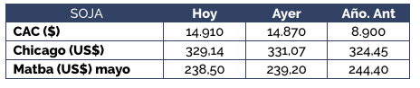 En la jornada de hoy, tuvimos una baja en el valor abierto de compra por soja con descarga inmediata, situándose el mejor precio ofrecido en los US$ 248,5/t, un dólar y medio por debajo de la jornada de ayer. No fue grande el volumen negociado en este segmento.