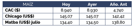 Tuvimos una mejora también en el valor ofrecido abiertamente para compra de maíz de campaña 2019/20. El precio por el cereal con descarga entre marzo y mayo de 2020 estuvo en los US$ 142/t, dos dólares por encima de la jornada previa. En cuanto al maíz con descarga en junio/julio del año próximo, el mejor precio ofrecido fue de US$ 135/t, con agosto en US$ 132/t.