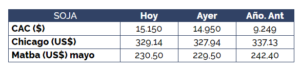 En la jornada de hoy, el valor abierto por compra de soja volvió a sufrir un recorte, ofreciéndose US$ 240/t por la oleaginosa condición contractual. Sin embargo, era posible conseguir mejoras significativas en este valor ofreciendo lote.