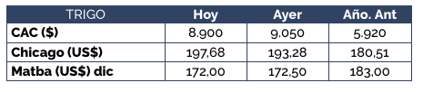 Al igual que la jornada anterior, en el día de hoy no se registraron ofertas de compra por el cereal.