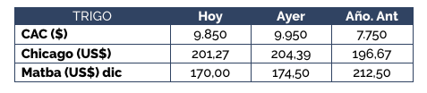En el día de hoy, no se registraron ofertas de compra abiertas por trigo.