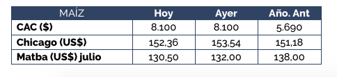 En el día de hoy, no se registraron ofertas de compra abiertas por maíz.