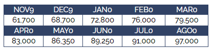 En cuanto al trigo con descarga en el año próximo, para la posición enero 2020 se ofrecieron abiertamente US$ 171/t, con febrero en US$ 172/t y marzo en US$ 175/t. Este último registra una baja de cinco dólares en relación a la jornada del viernes
