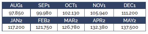 En cuanto a las ofertas de la próxima cosecha la entrega en el mes de noviembre y diciembre arribó a los US$ 230/t, resultando en un incremento de US$ 5/t. Luego, la entrega en el mes de enero se ubicó en US$ 231/t, aumentando US$ 1/t respecto al día de ayer. Mientras que el tramo febrero mejoró hasta US$ 232/t y marzo a US$ 235/t respectivamente.