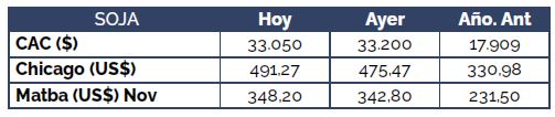 En el mercado de soja, se observó un escaso nivel de actividad durante buena parte de la rueda de hoy, con pocos compradores activos brindando precios abiertos. Al igual que el día de ayer, solo se realizaron ofrecimientos para tramos cortos de negociación.