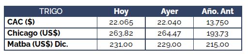 El mercado del trigo presentó un menor número de compradores activos, aunque se mantuvo el abanico de ofertas abiertas de compra. Respecto a precios, destacaron las subas de la próxima campaña.